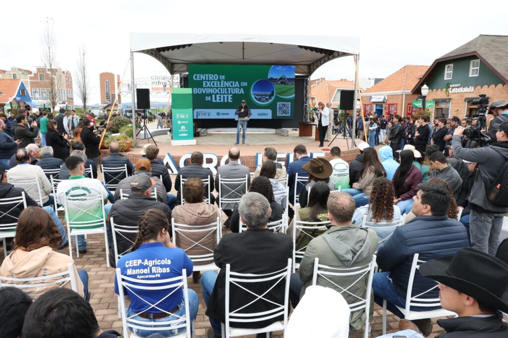 Em seu discurso, o presidente interino do Sistema FAEP, Ágide Eduardo Meneguette, destacou que a instalação do Centro de Excelência em Leite no Paraná é fruto de uma união de esforços, iniciada em julho de 2024. Na ocasião, após ter realizado uma missão de relacionamento institucional em Brasília, o Sistema FAEP iniciou uma articulação para que o Paraná fosse escolhido para sediar o complexo educacional. A partir disso, aderiram à iniciativa parceiros como o Sindicato Rural de Castro, a prefeitura local e a cooperativa Castrolanda.