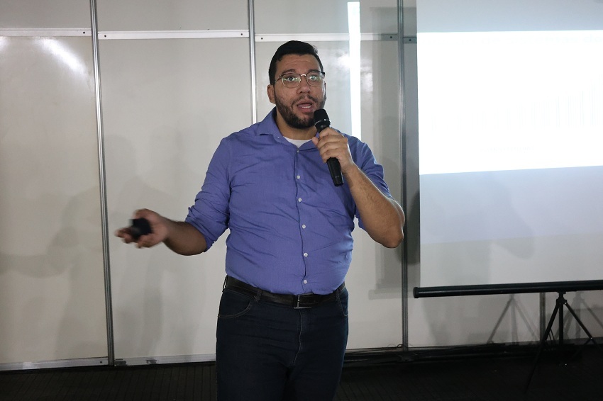Apresentações – Na primeira apresentação do Circuito, o pesquisador Giovanni Penazzi, do Centro de Estudos Avançados em Economia Aplicada (Cepea), abordou o tema “Quanto está custando a arroba?”.