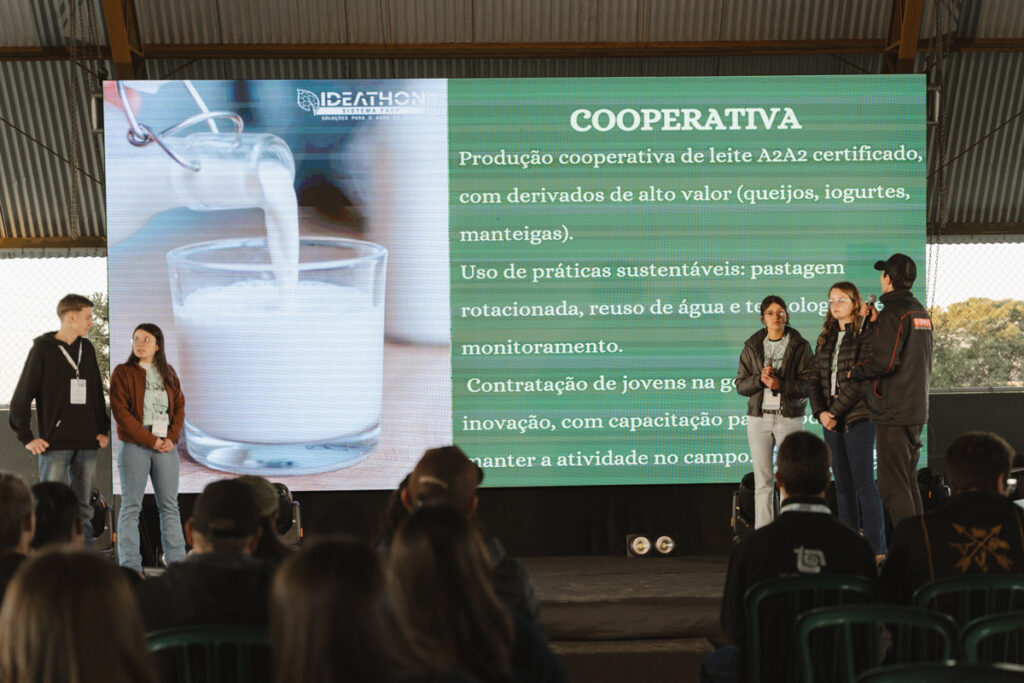 Em Castro, o tema imposto aos alunos envolveu a principal atividade agropecuária da região: a pecuária de leite. Os estudantes tiveram que desenvolver projetos com a temática: “Como podemos aumentar a rentabilidade das propriedades de leite, com soluções inovadoras e sustentáveis que valorizem o trabalho do produtor e incentivem a permanência dos jovens no campo?”