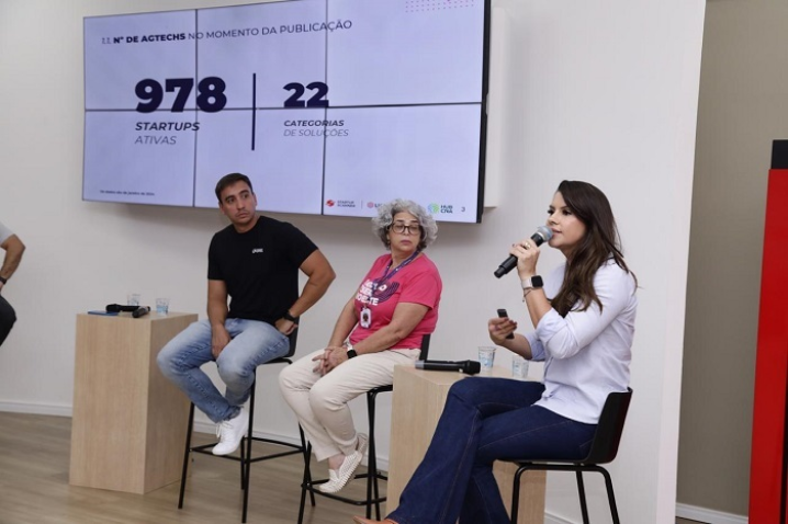 No primeiro painel, a coordenadora falou sobre o panorama das agtechs no Brasil e apresentou um estudo realizado em parceria com a Liga Ventures e Bunge - o Startup Landscape Agtech, que mapeou startups ligadas ao setor agropecuário na América Latina.