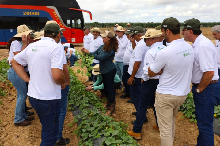 A comitiva de Mato Grosso composta por produtores e presidentes de sindicatos rurais encerrou a passagem pelo Vale do São Francisco. Nesta sexta-feira (02), foi realizada a última visita em uma das propriedades especializadas na atividade. Com aptidão para o cultivo do melão, a fazenda Sweet Valley destina 67 hectares para a fruta. Pode parecer pouco, mas os números mostram uma situação diferente. Desde 2022, a média de produtividade é de 30 toneladas por hectare com três safras por ano.