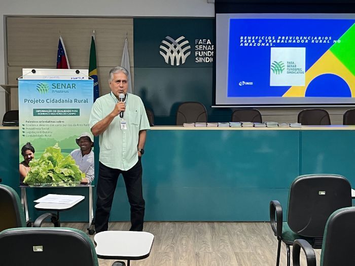 Com o objetivo de ampliar o conhecimento sobre os direitos e deveres previdenciários no campo, o Serviço Nacional de Aprendizagem Rural (SENAR-AR/AM) realizou neste mês de junho, no auditório da sede administrativa localizada em Manaus, a palestra “Benefícios Previdenciários para o Produtor Rural”. A atividade faz parte do Programa Cidadania Rural da Arrecadação e foi ministrada pelo representante do Instituto Nacional do Seguro Social (INSS).