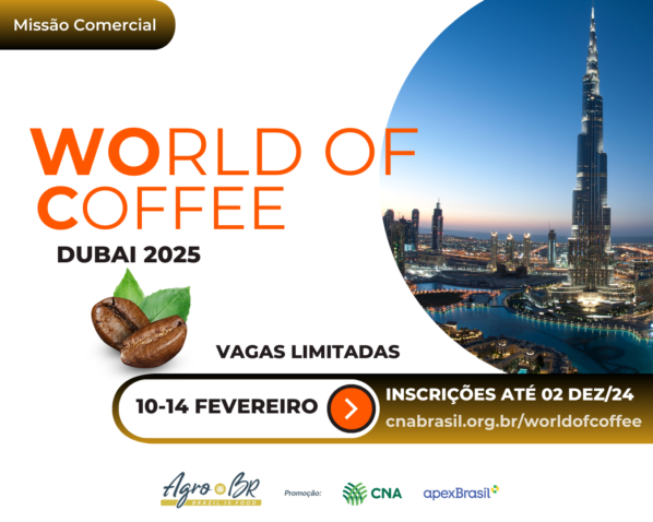 Brasília (07/02/2025) – A Confederação da Agricultura e Pecuária do Brasil (CNA), por meio do projeto Agro.BR, promove, nos dias 10 a 14 de fevereiro, uma missão comercial a Dubai, com foco na promoção dos cafés brasileiros.