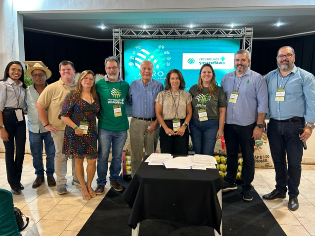 Dois produtores rurais capixabas assinaram o Termo de Adesão, junto ao Idaf, para regularizar suas propriedades, por meio do Propriedade + Sustentável. A assinatura ocorreu nesta sexta-feira (30), no Pinheiros AgroShow, junto ao lançamento do programa, que foi apresentado por Pedroni, durante o evento.