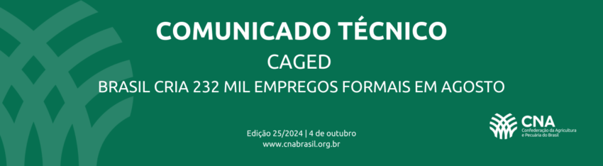 Para agosto de 2024, todas as regiões brasileiras apresentaram saldo positivo, quando avaliado o total de empregos da economia. O Sudeste destaca-se com a maior criação de vagas para o período com o total de 96.241 vagas. Na sequência, o Nordeste registra o segundo maior saldo de vagas (72.372). O Sul do país gerou 30.857 postos de trabalho. Norte e Centro-Oeste registraram 14.886 e 14.539 vagas, respectivamente. Já o saldo para a Agropecuária registrou maior heterogeneidade entre as regiões. Para o Sudeste, o saldo agropecuário para agosto foi negativo em 10.185 vagas. O Nordeste apresentou saldo positivo, com 10.353 vagas. O Sul registrou saldo negativo para a Agropecuária de 137 vagas. O Norte e Centro-Oeste registraram saldos de 551 e -1.281 vagas para a Agropecuária, respectivamente.