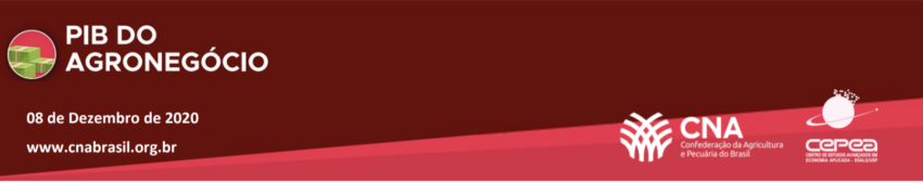 O PIB do agronegócio brasileiro cresceu 8,48% de janeiro a agosto de 2020. Os segmentos primário e de agrosserviços mantiveram destaque, com altas de 23,03% e de 7,28% no PIB, respectivamente. Já a agroindústria, segmento do agronegócio mais afetado pelas medidas relacionadas à pandemia, seguiu com o resultado menos satisfatório. Deve-se destacar, no entanto, que depois de recuar em abril e maio, o PIB do segmento agroindustrial tem demonstrado alguma recuperação desde junho – o que explica o resultado de estabilidade (-0,09%) registrado no acumulado do período de janeiro a agosto. Destaca-se também que as dificuldades para o crescimento do PIB agroindustrial se relacionam sobretudo às atividades de base agrícola. A agroindústria da pecuária, por sua vez, tem apresentado crescimento no período, impulsionada pelos maiores preços das carnes e dos laticínios frente a 2019.